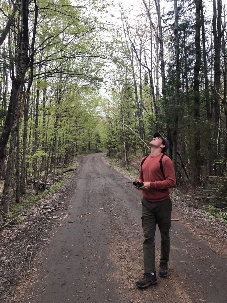 Dawn brought swarms of mosquitos and a big increase in bird song. By 6:30am, we had 62 species on our list, and a car full of squashed bugs. We spent the rest of the morning driving around to fields and forests, waving off blackflies, and adding more birds to our list including Bobolink, Trumpeter Swan, and Osprey.
