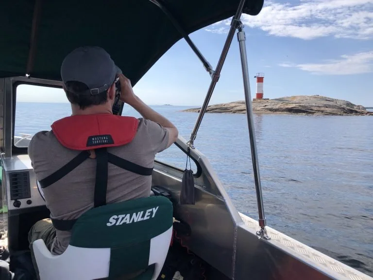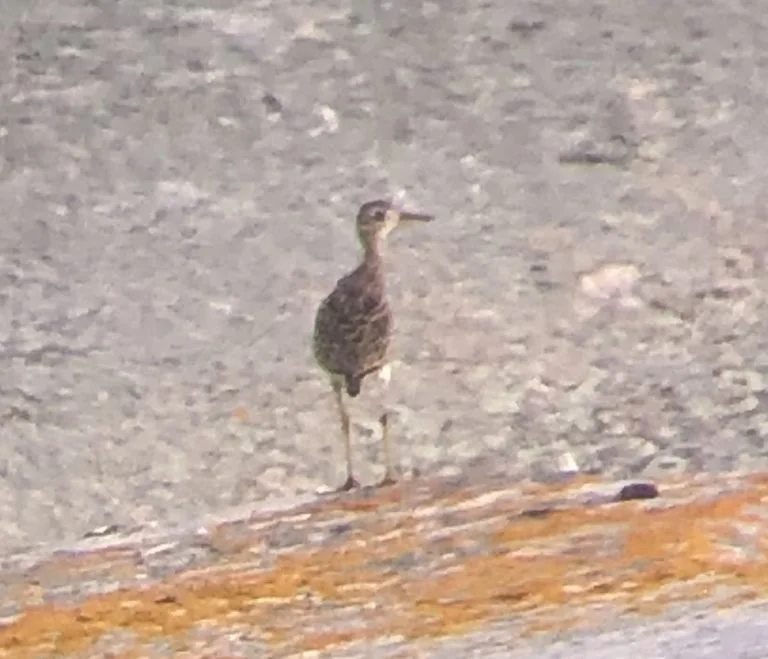 The weather was beautiful as we finally got on the water and out to the islands. The sounds of gulls filled the air, and our final checklists included cormorants, mergansers, and loons. Then the highlight of the day happened: one of the shorebirds on Southeast Wooded Pine Island didn’t look quite the same as the others. Upon closer inspection, we discovered it was an Upland Sandpiper – not recorded in the District of Muskoka since 2003! These birds are known to breed a little farther south on the Carden Alvar, and we were thrilled to discover it here on a Georgian Bay Land Trust property.