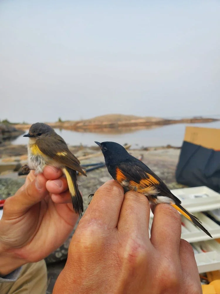 The Georgian Bay Land Trust conducts bird research at the Robertson Nature Reserve, including MAPS migration monotoring and our Prairie Warbler study. We've been delighted to find Prairie Warblers nesting among the junipers - it is places like this that help these small black and yellow birds thrive in Georgian Bay while being absent from much of the surrounding region.