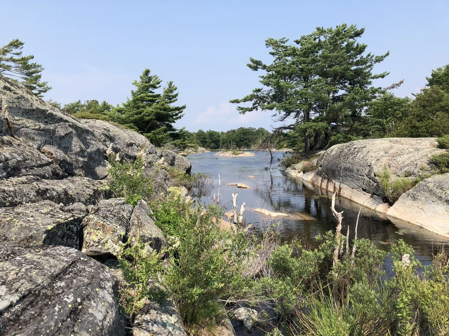 Comprising 3 small islands and all of the west side of the much larger Lookout Island, the West Lookout Island Reserve has over 5 kms of shoreline. One of the islands has a number of ancient geological potholes. Only a few scattered shoals and islands separate this property from open Georgian Bay, exposing the flora and fauna that inhabit the property to the extreme weather conditions of Georgian Bay. Despite these conditions, the property supports a variety of flora and fauna, including more than 115 plant species. A variety of Georgian Bay’s famous reptiles inhabit this property, due to its high quality open rock barrens and protected wetlands.